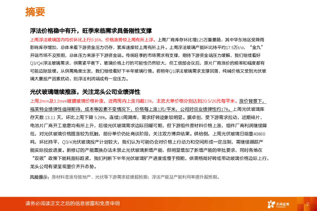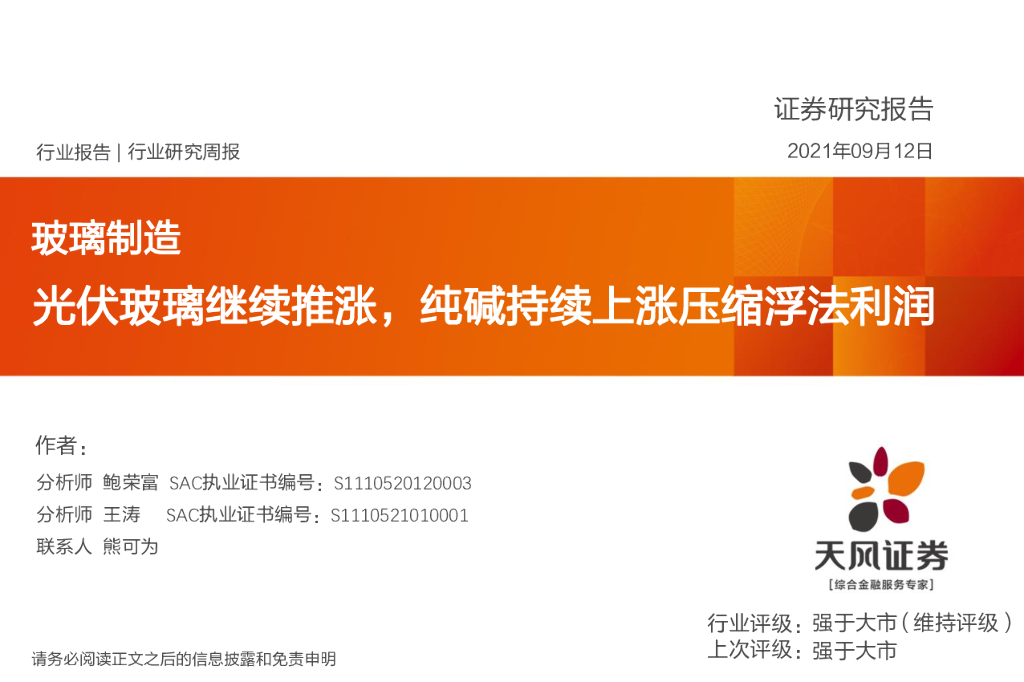 天风证券:玻璃制造行业研究周报:光伏玻璃继续推涨,纯碱持续上涨压缩浮法利润.pdf