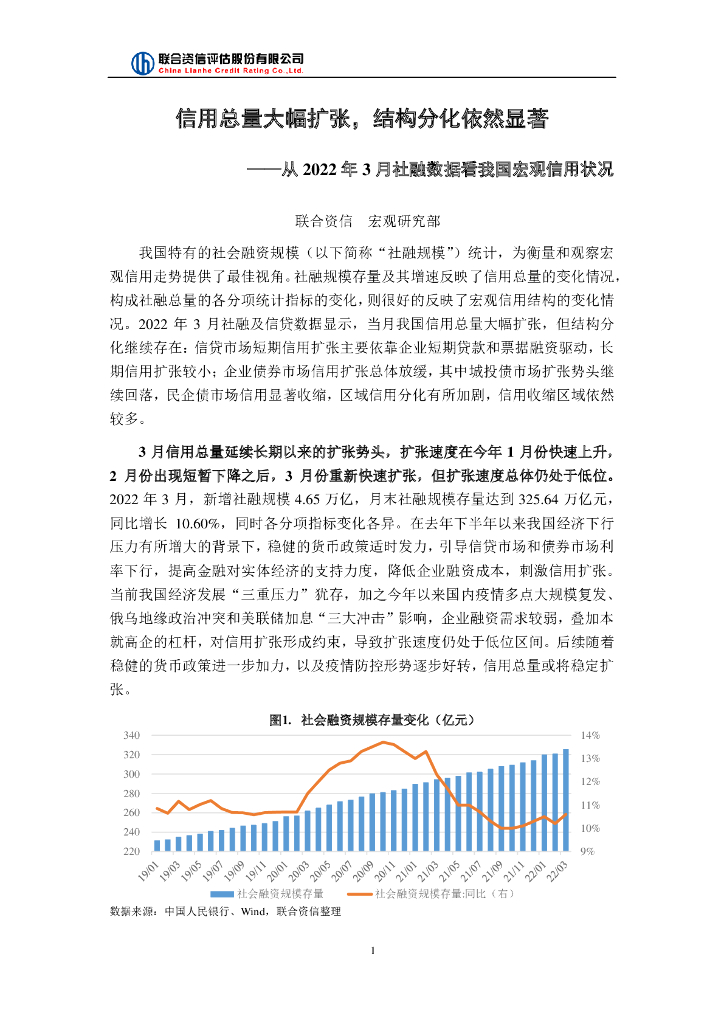 联合资信:信用总量大幅扩张,结构分化依然显著-从2022年3月社融数据看我国宏观信用状况.pdf