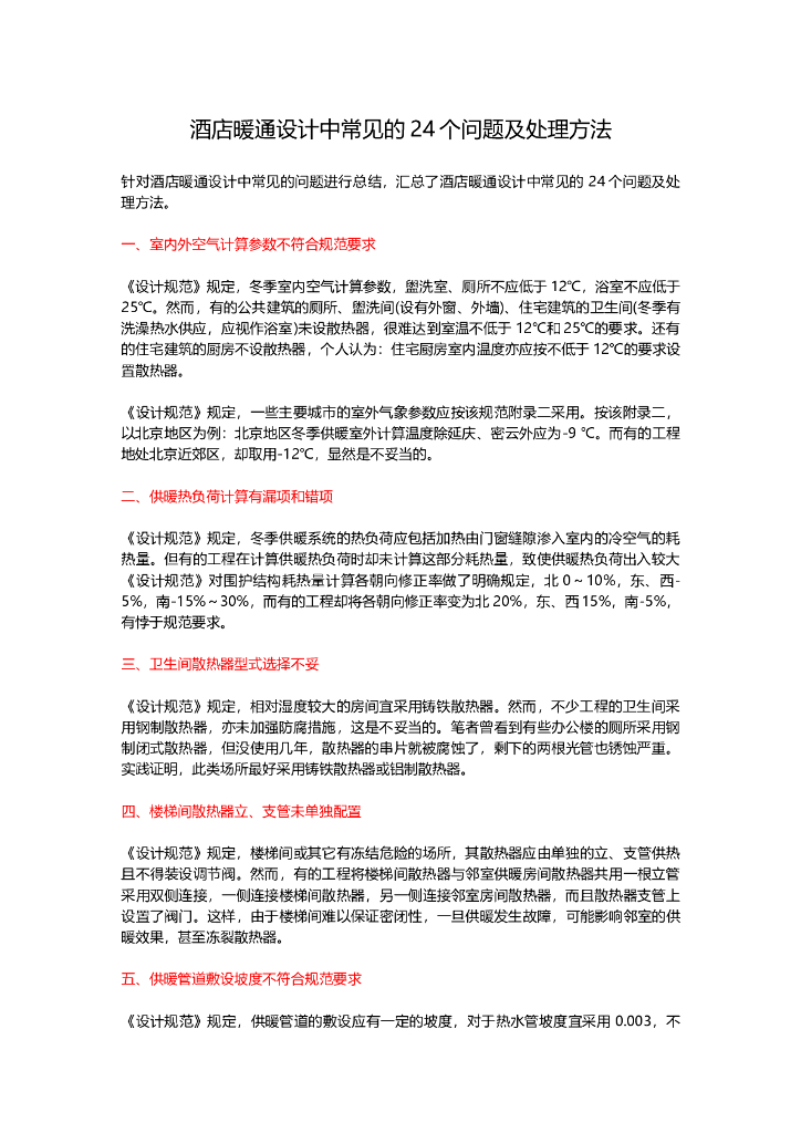 酒店暖通设计中常见的24个问题及处理方法.doc