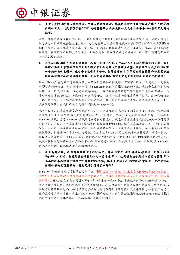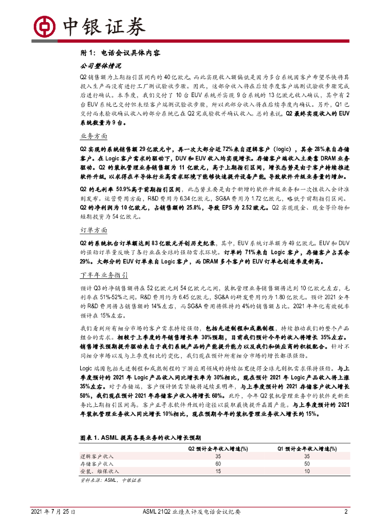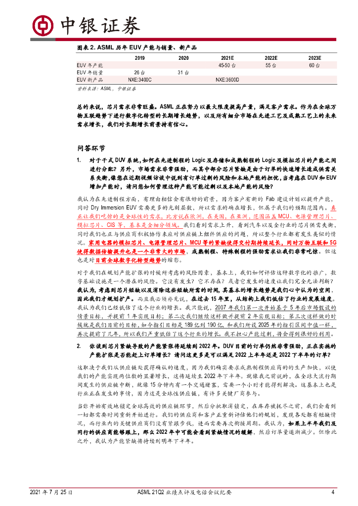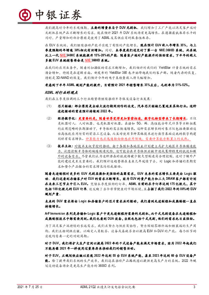 中银证券:机械设备行业:ASML21Q2业绩点评及电话会议纪要:EUV、DUV订单大幅增长,芯片紧缺、经济数字化转型、芯片安全支撑半导体行业乐观预期.pdf