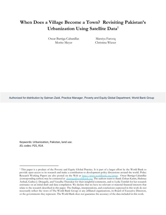 世界银行:一个村庄什么时候变成一个城镇?利用卫星数据重新审视巴基斯坦的城市化(英文版).pdf