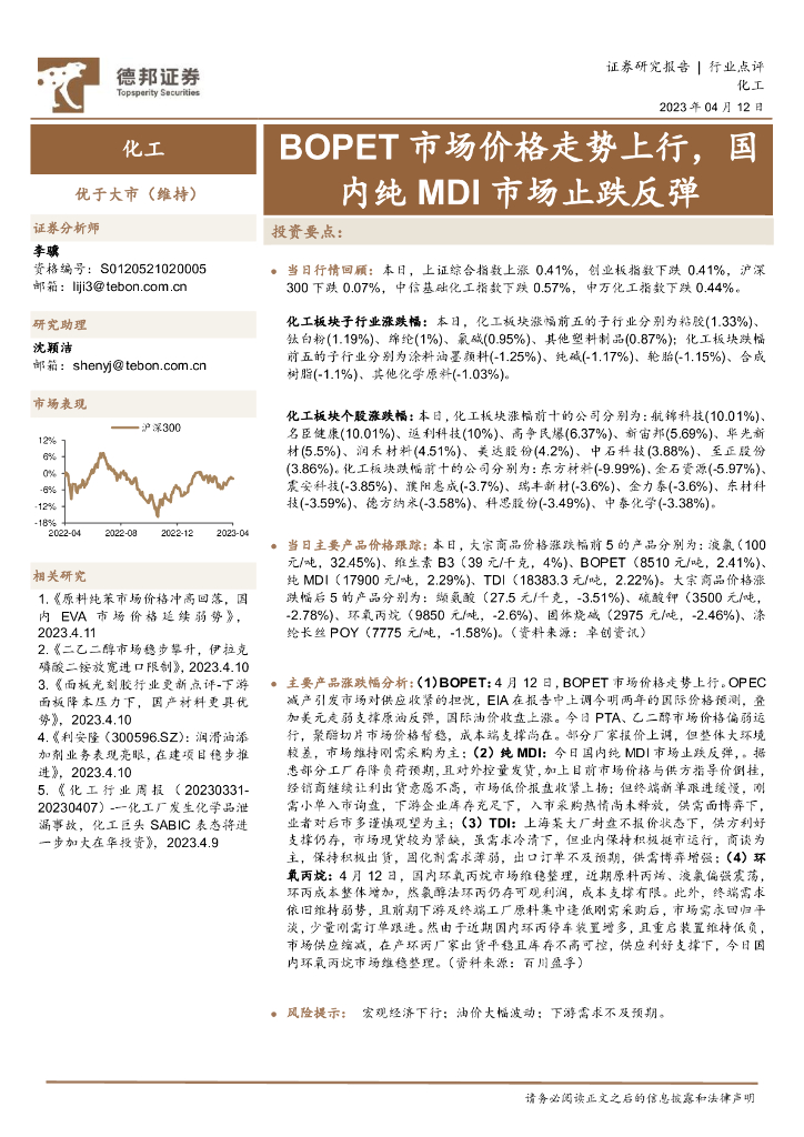 德邦证券:化工:BOPET市场价格走势上行,国内纯MDI市场止跌反弹.pdf