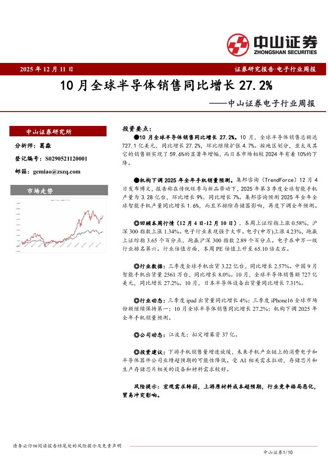 中山证券:电子行业周报:10月全球半导体销售同比增长27.2%.pdf