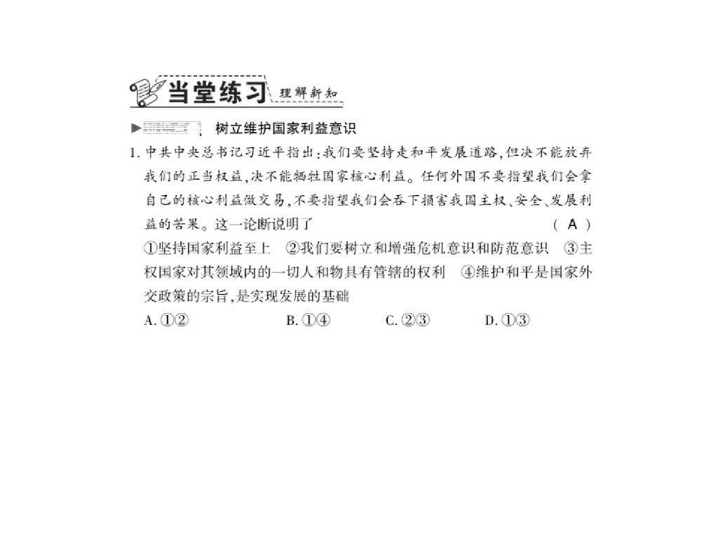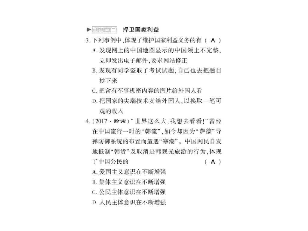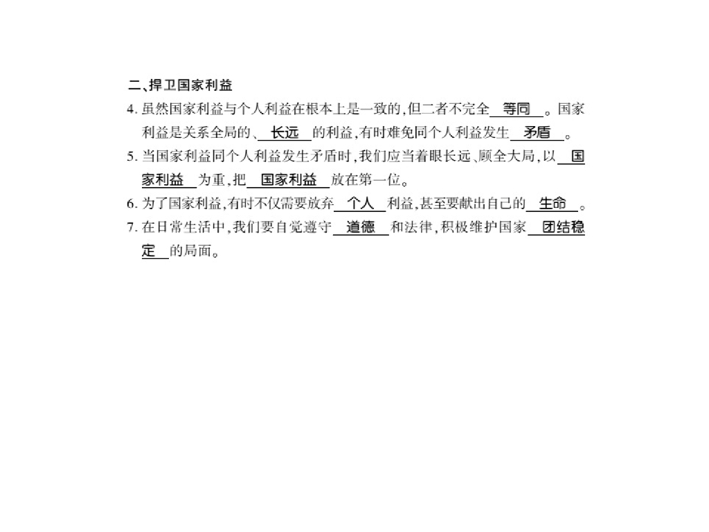 2021人教版八年级道德与法治上册习题课件:第八课第二框 坚持国家利益至上.ppt