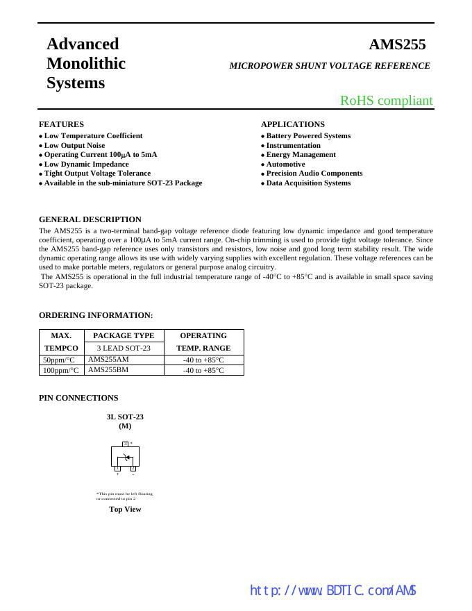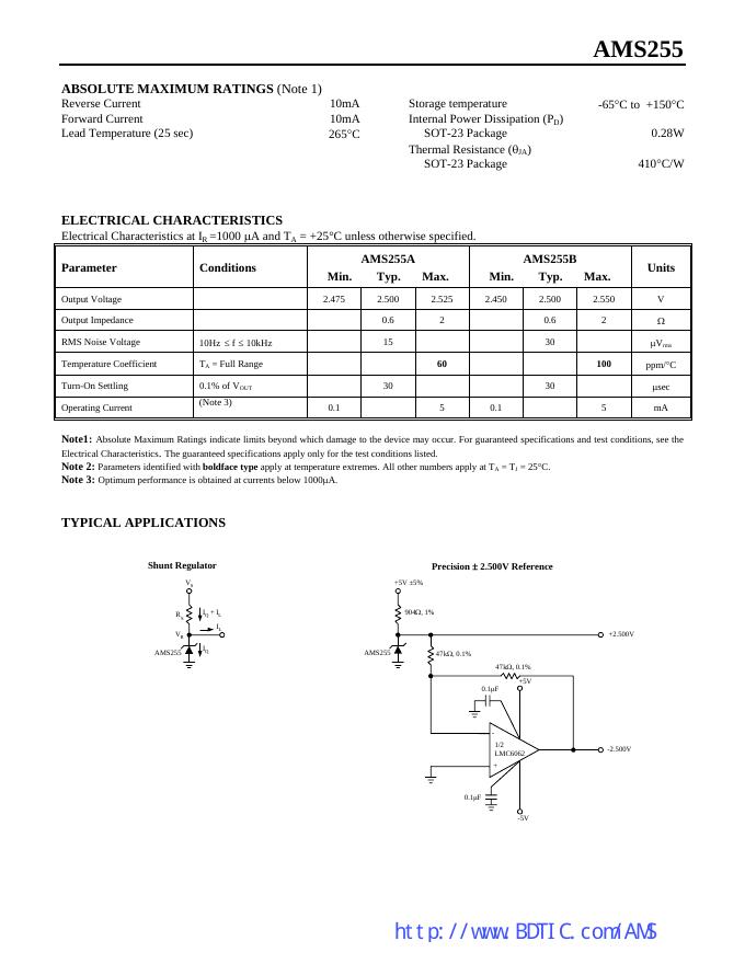 AMS255 MICROPOWER SHUNT VOLTAGE REFERENCE 数据手册.pdf