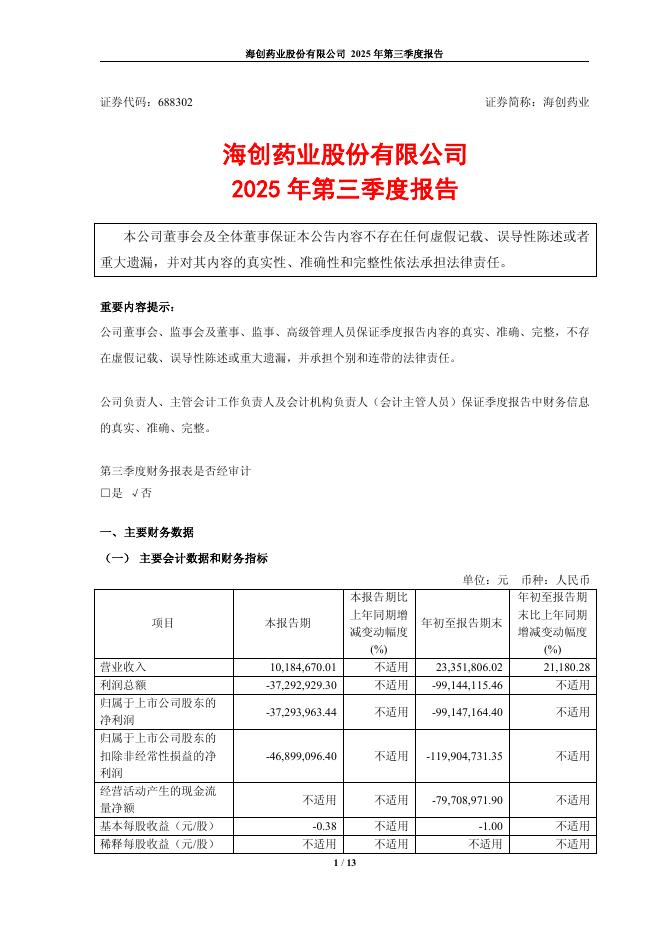 688302-海创药业:2025年第三季度报告.pdf