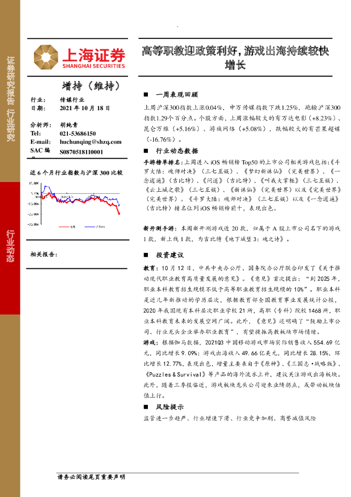 上海证券:传媒行业:高等职教迎政策利好,游戏出海持续较快增长.pdf