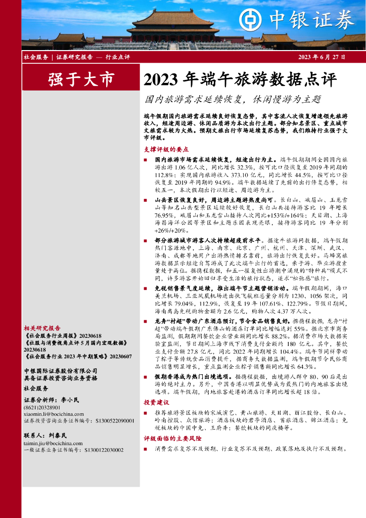 中银证券:2023年端午旅游数据点评:国内旅游需求延续恢复,休闲慢游为主题.pdf
