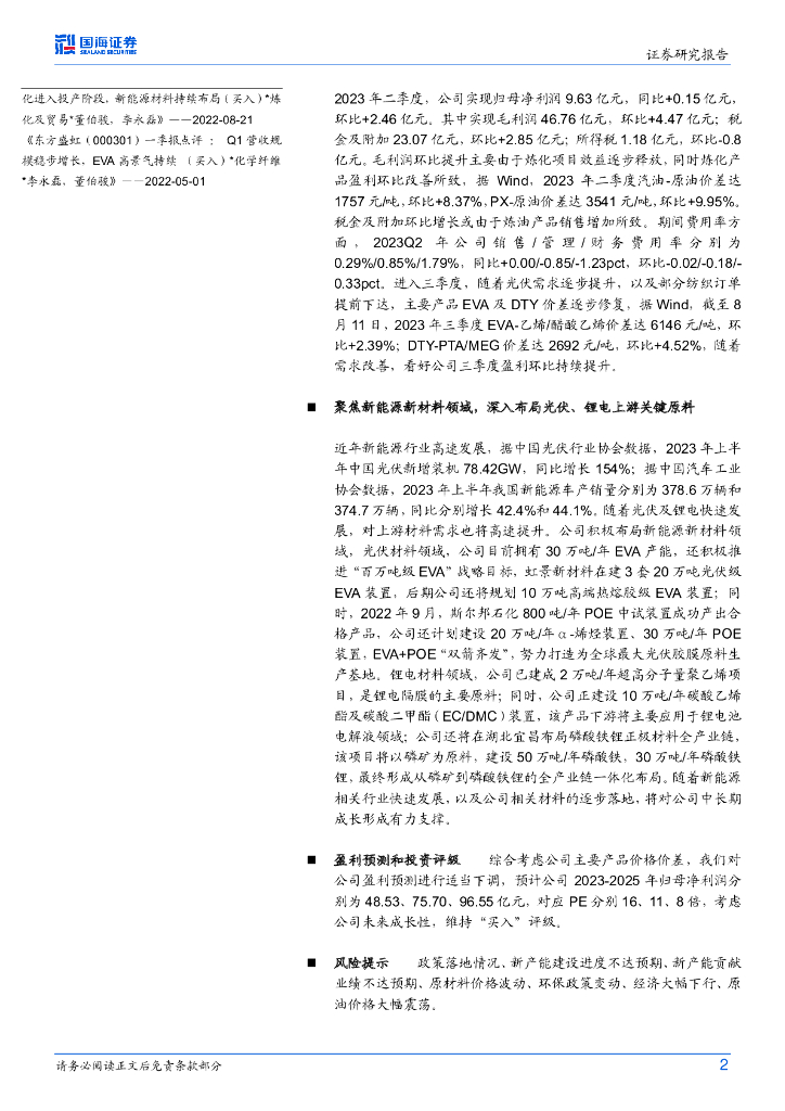 国海证券:东方盛虹(000301)-2023年中报点评:二季度业绩环比改善,新材料多点布局驱动成长.pdf