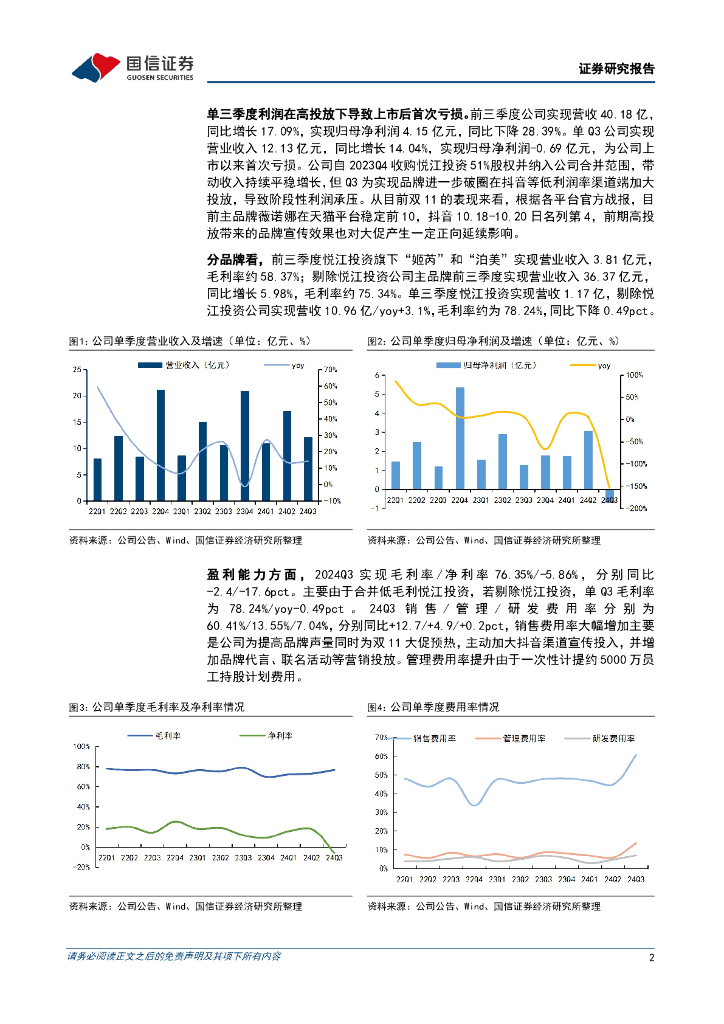 国信证券:贝泰妮(300957)-三季度收入平稳增长14%,高费用投放致利润阶段性亏损.pdf
