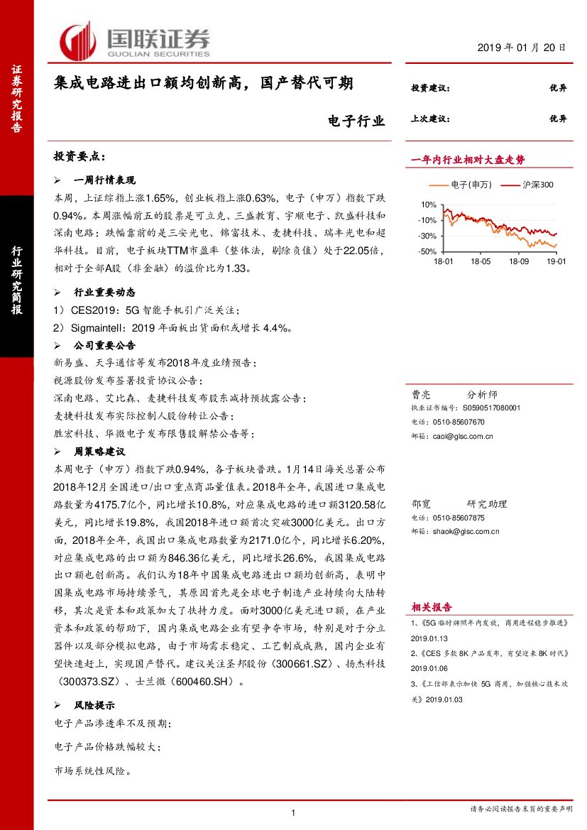 国联证券:电子行业研究简报:集成电路进出口额均创新高,国产替代可期.pdf