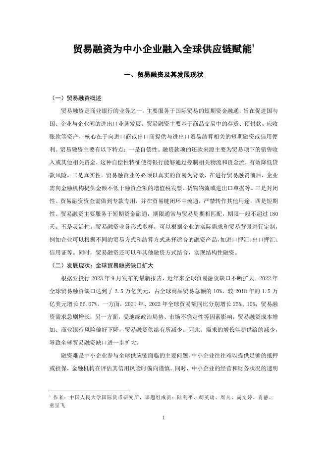 IMI中国人民大学国际货币研究所:贸易融资为中小企业融入全球供应链赋能报告.pdf