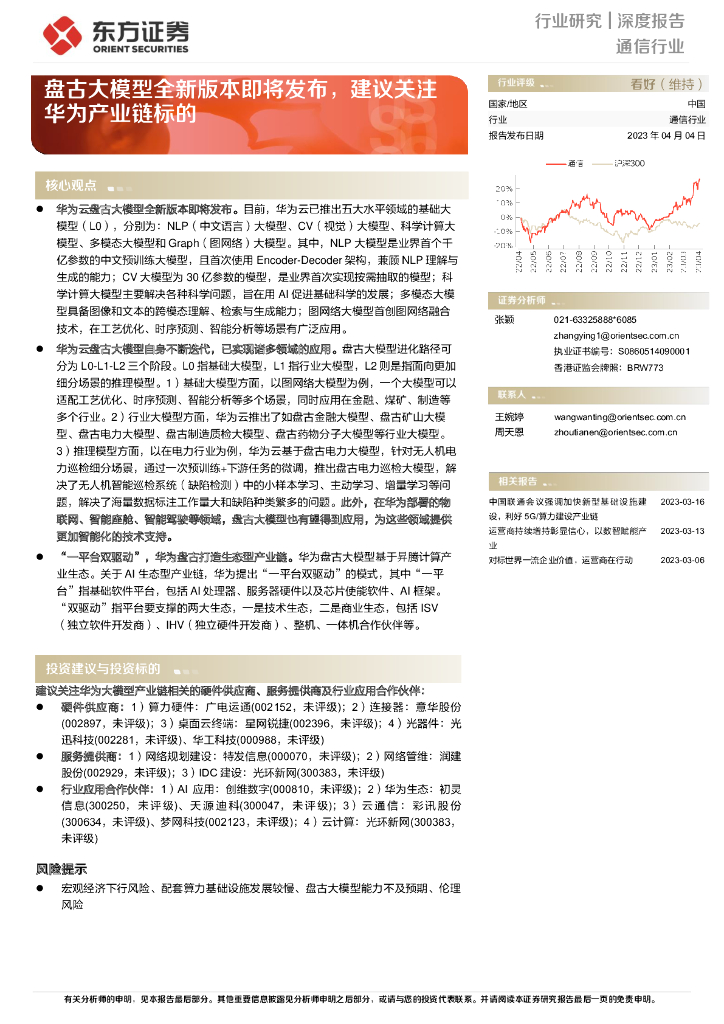 东方证券:通信行业深度报告:盘古大模型全新版本即将发布,建议关注华为产业链标的.pdf