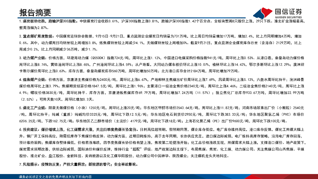 国信证券:煤炭周报(9月第4周):沿海电厂去库,化工需求大涨,关注焦煤长协.pdf
