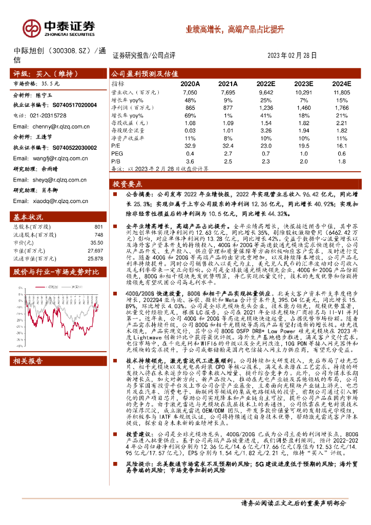 中泰证券:中际旭创(300308)-业绩高增长,高端产品占比提升.pdf