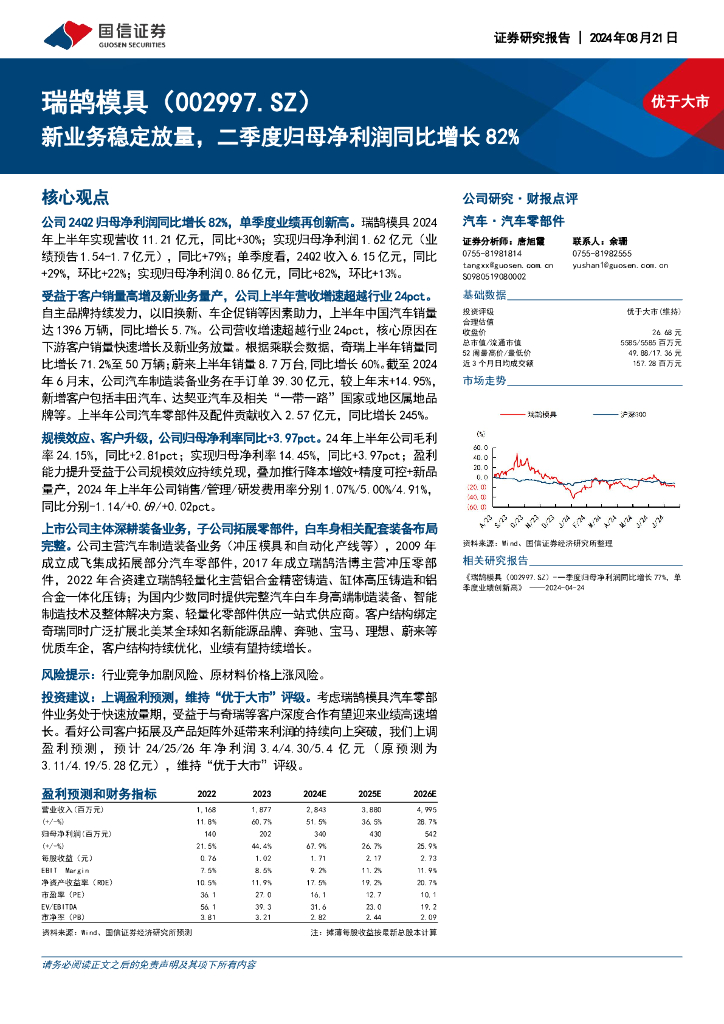 国信证券:瑞鹄模具(002997)-新业务稳定放量,二季度归母净利润同比增长82%.pdf
