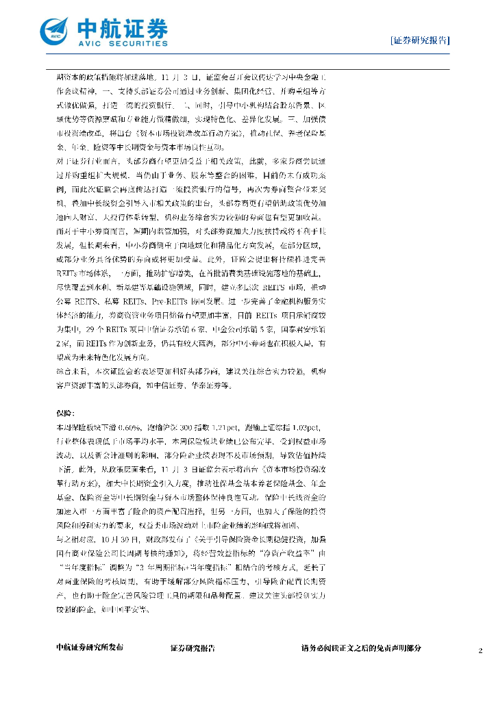 中航证券:非银行业周报(第三十八期):打造一流投行,引导长线资金入市,关注头部券商政策红利.pdf