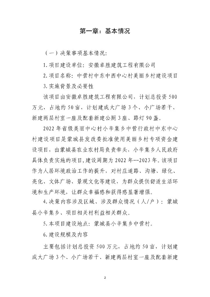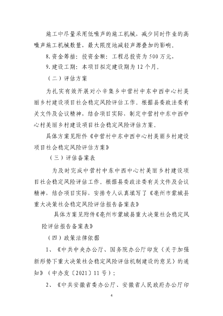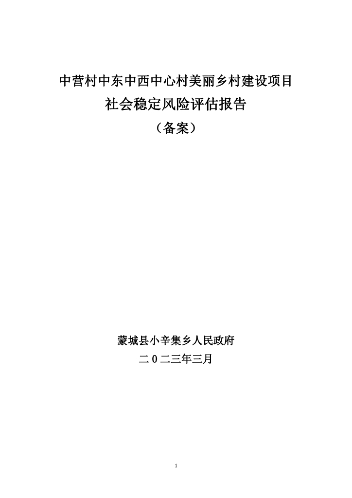 蒙城县小辛集乡人民政府:2023中营村中东中西中心村美丽乡村建设项目社会稳定风险评估报告(备案).pdf