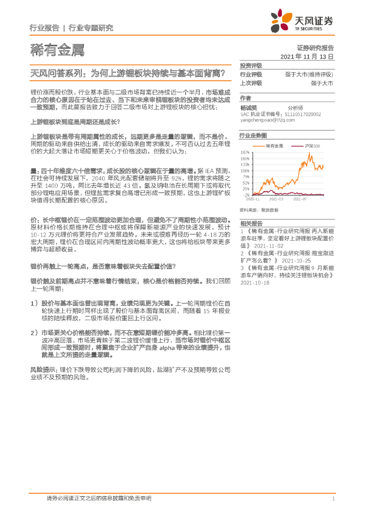 天风证券:稀有金属:天风问答系列:为何上游锂板块持续与基本面背离?.pdf
