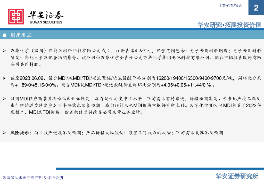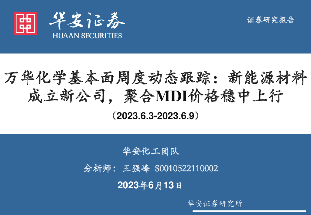 华安证券:万华化学基本面周度动态跟踪:新能源材料成立新公司,聚合MDI价格稳中上行.pdf