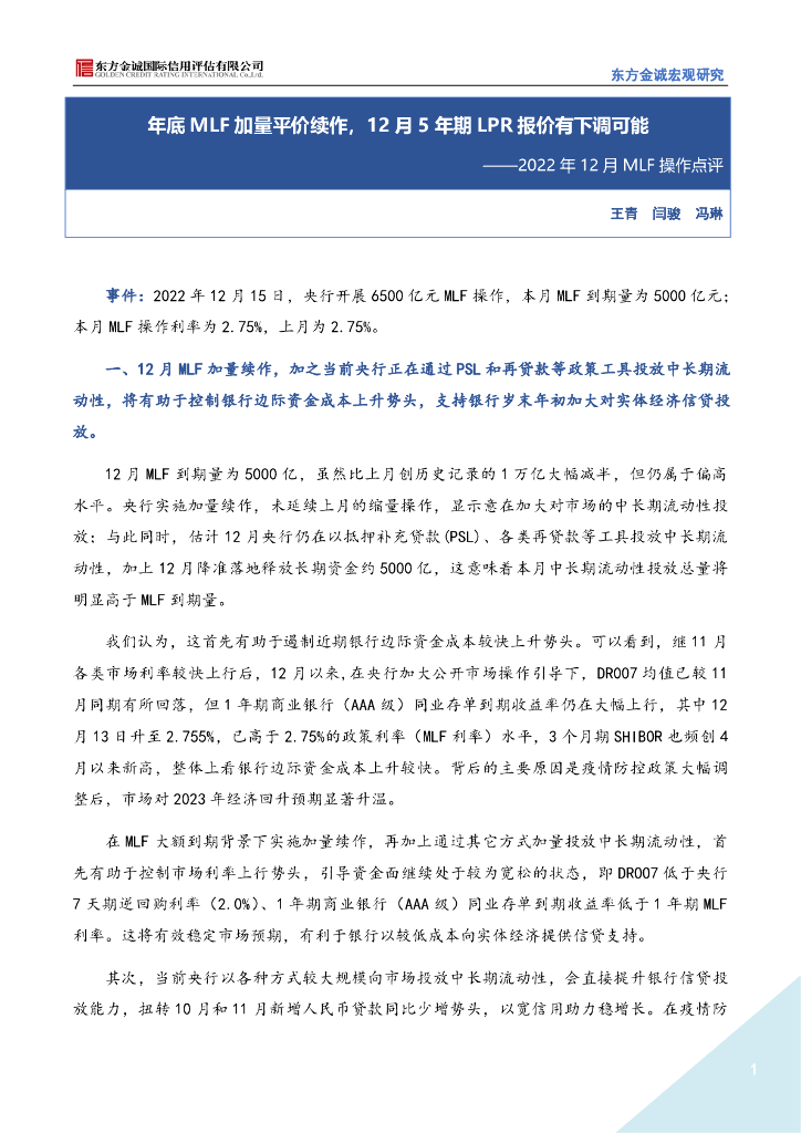 东方金诚: 2022年12月MLF操作点评-年底MLF加量平价续作,12月5年期LPR报价有望下调.pdf