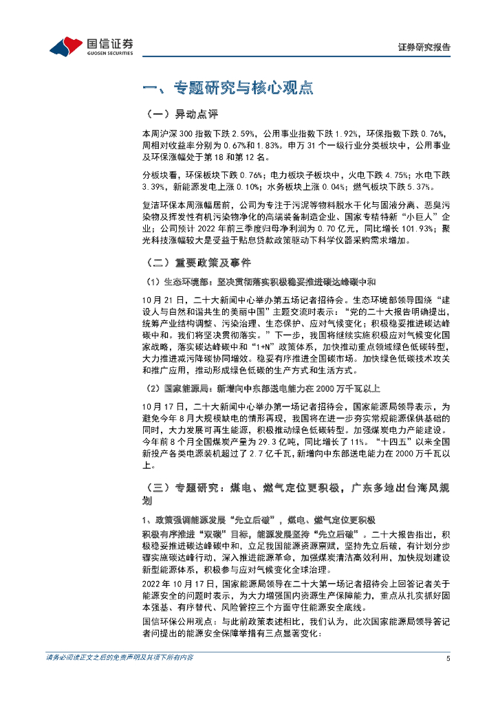 国信证券:环保与公用事业202210第3期:二十大报告强调能源安全,煤电、燃气定位更积极,多地出台海风规划.pdf