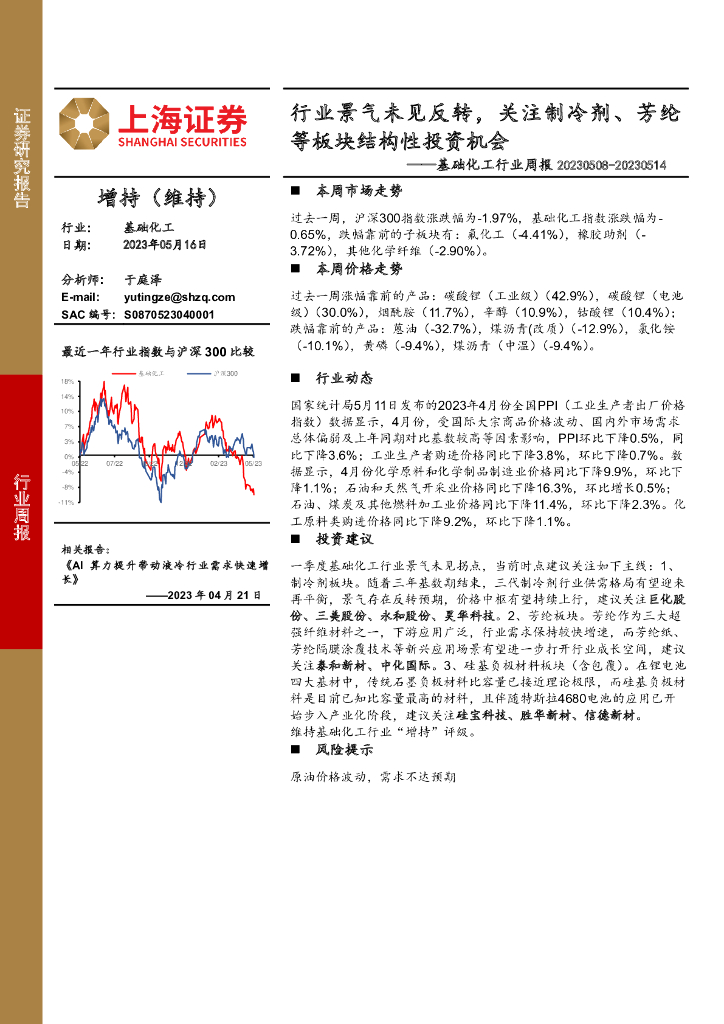 上海证券:基础化工行业周报:行业景气未见反转,关注制冷剂、芳纶等板块结构性投资机会.pdf