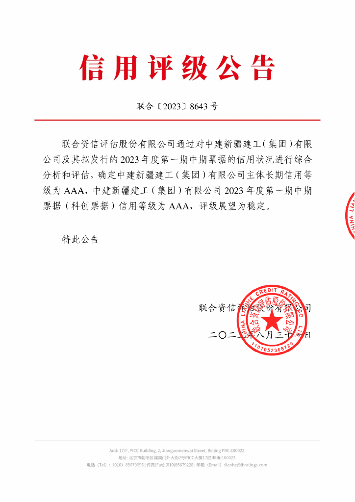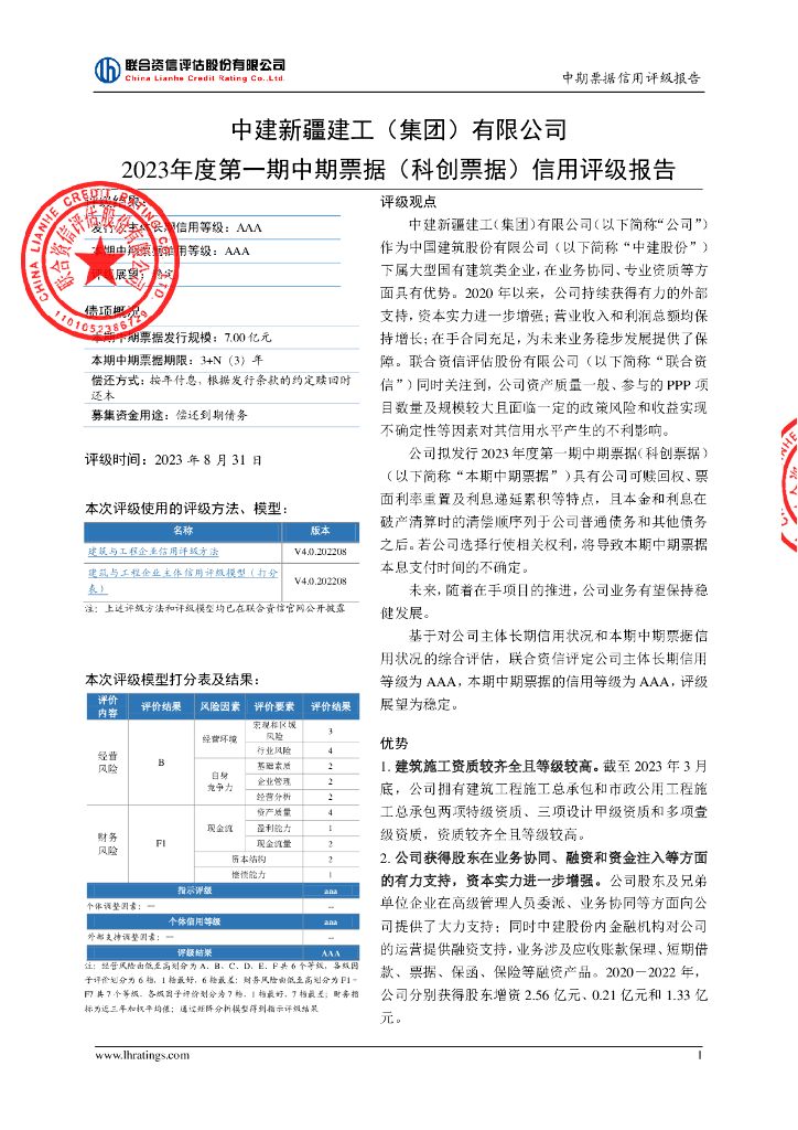 联合资信:中建新疆建工(集团)有限公司2023年度第一期中期票据(科创票据)信用评级报告.pdf