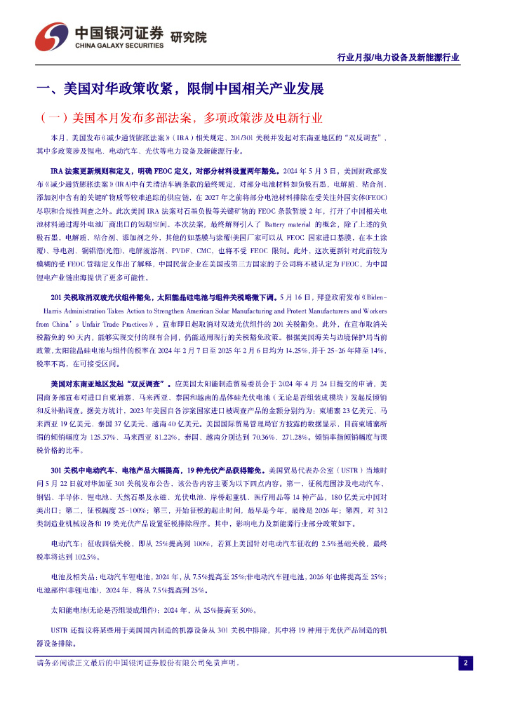 中国银河:电力设备及新能源行业5月行业动态报告:美国对华收紧系列政策对电新行业影响分析.pdf