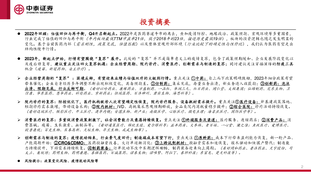 中泰证券:2023年医药生物投资策略:“复苏”演绎下的新起点.pdf