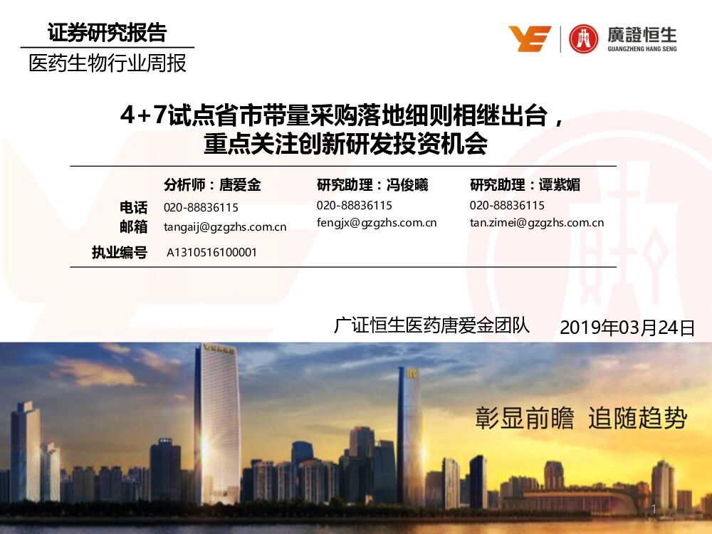 广证恒生证券研究所:医药生物行业周报:4+7试点省市带量采购落地细则相继出台,重点关注创新研发投资机会.pdf