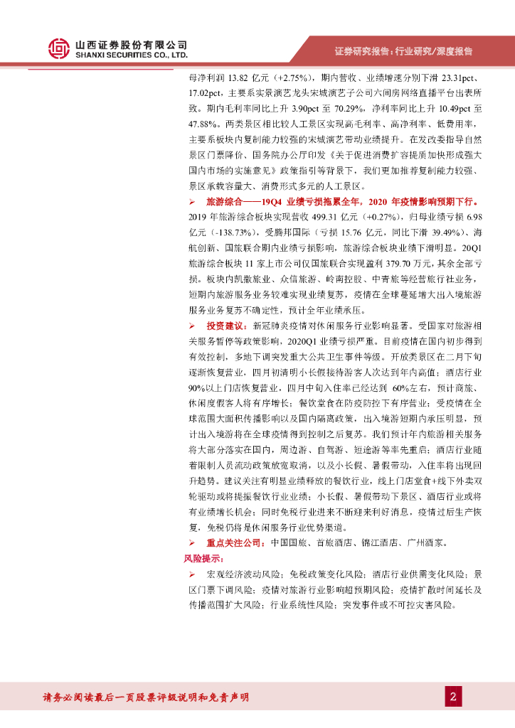 山西证券:社服行业2019年报2020年一季报综述:19年营收增速放缓20Q1疫情下业绩亏损严重 看好业绩修复能力.pdf