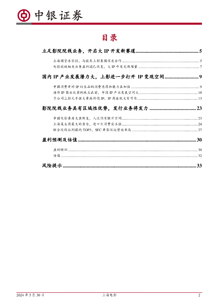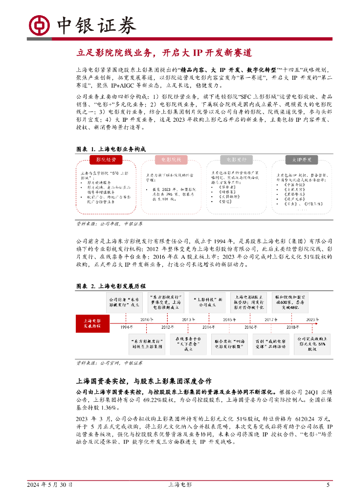 中银证券:上海电影(601595)-主业发展稳健,稀缺IP资源打开成长空间.pdf