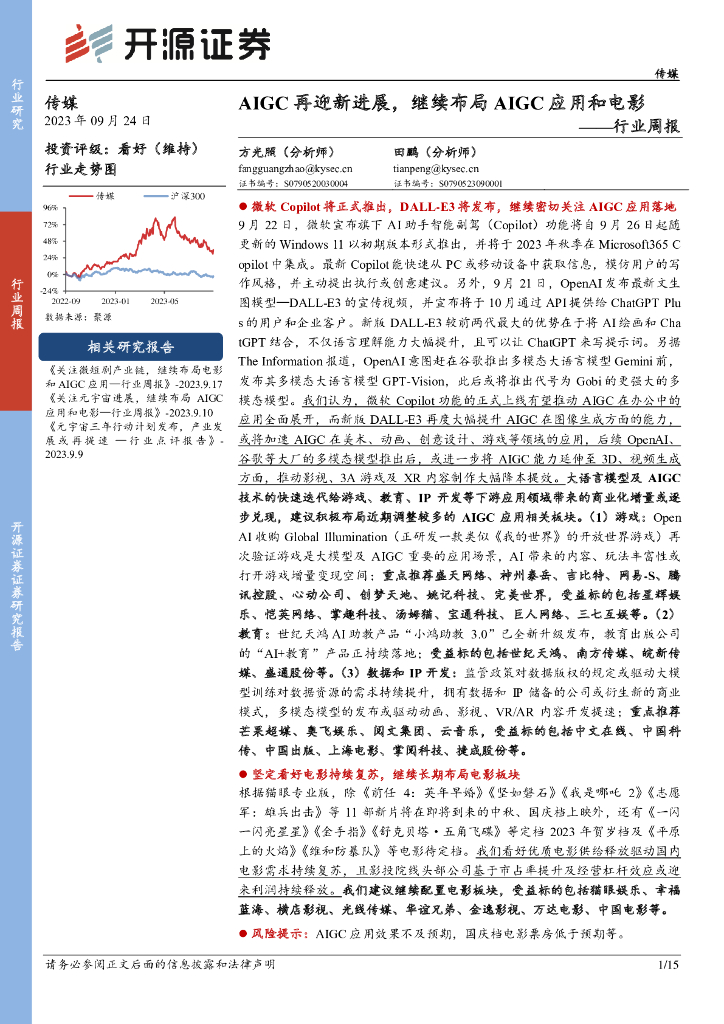 开源证券:传媒行业周报:AIGC再迎新进展,继续布局AIGC应用和电影.pdf