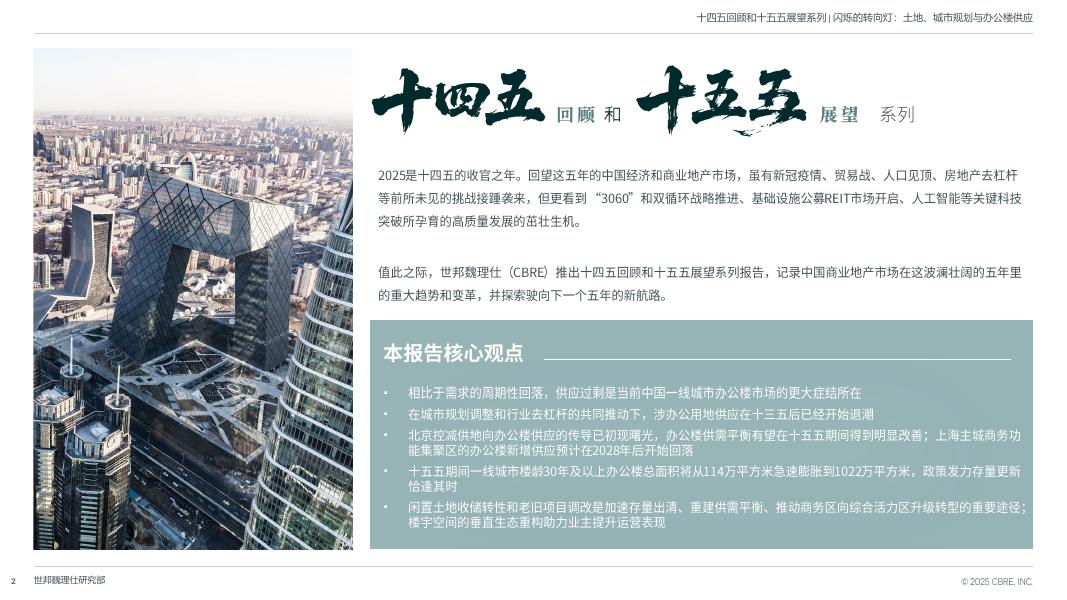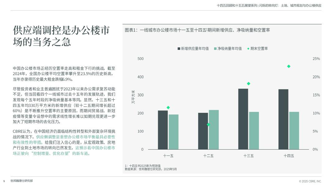 CBRE世邦魏理仕:2025年十四五回顾与十五五展望系列报告-闪烁的转向灯:土地、城市规划与办公楼供应.pdf