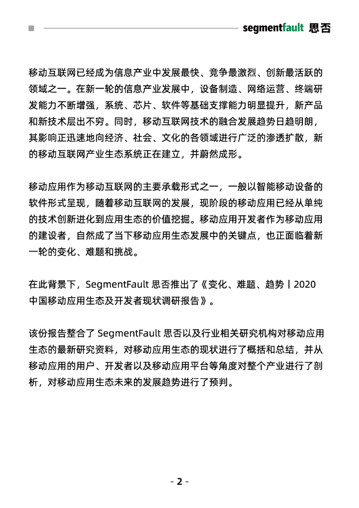 SegmentFault思否:变化、难题、趋势——2020中国移动应用生态及开发者现状调研报告.pdf