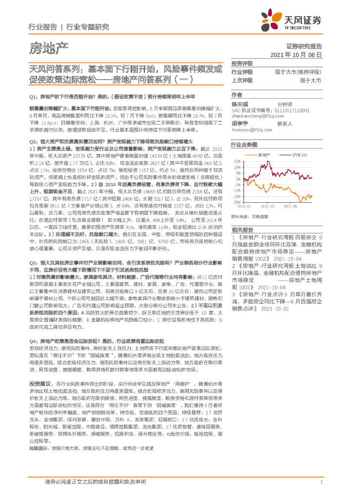天风证券:房地产问答系列(一):天风问答系列:基本面下行刚开始,风险事件频发或促使政策边际宽松.pdf