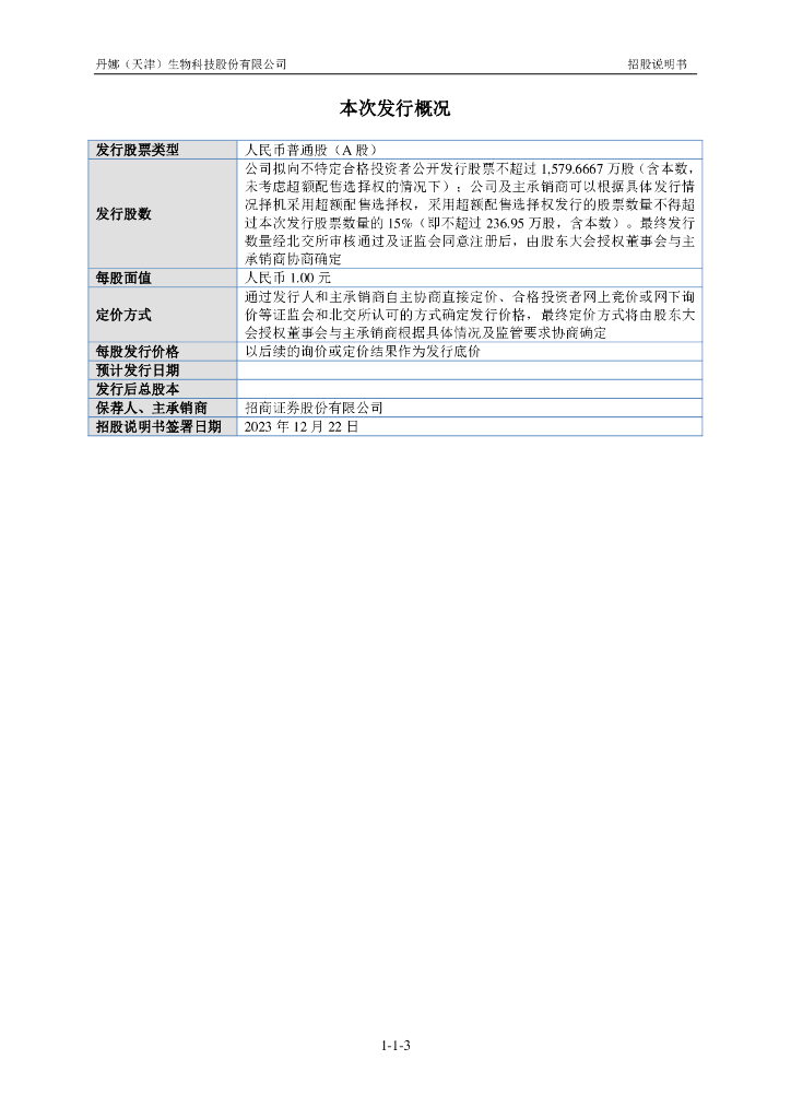 丹娜(天津)生物科技股份有限公司北交所IPO上市招股说明书(920009)