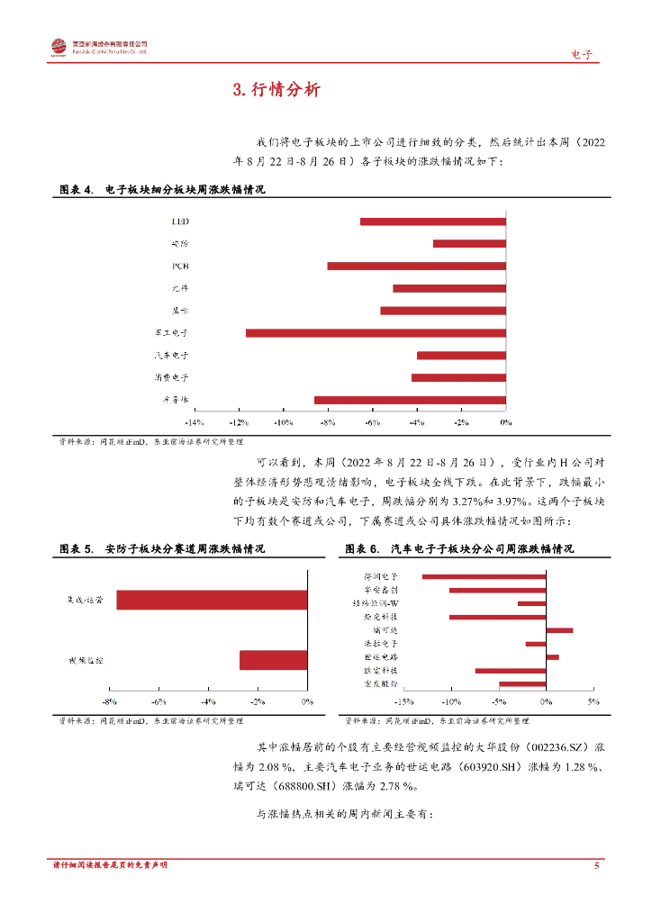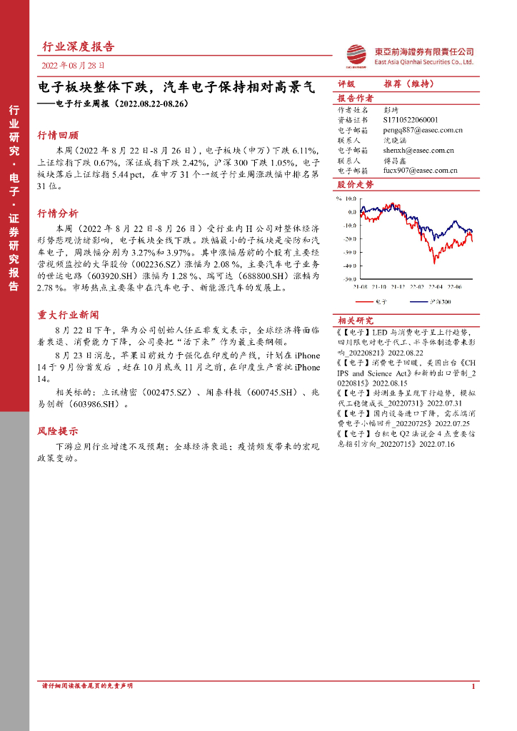 东亚前海证券:电子行业周报:电子板块整体下跌,汽车电子保持相对高景气.pdf