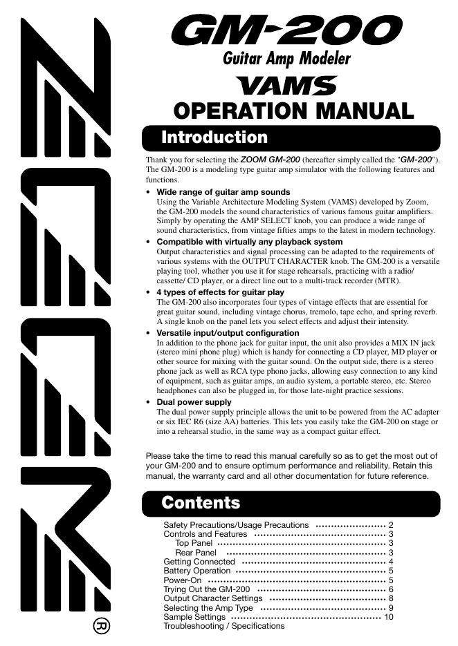 ZOOM GM-200 Guitar Amp Modeler 操作手册.pdf