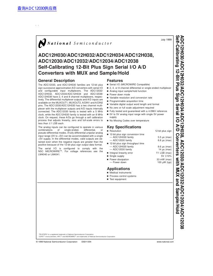 National Semiconductor ADC12H030/ADC12H032/ADC12H034/ADC12H038/ADC12030/ADC12032/ADC12034/ADC12038 数据手册.pdf