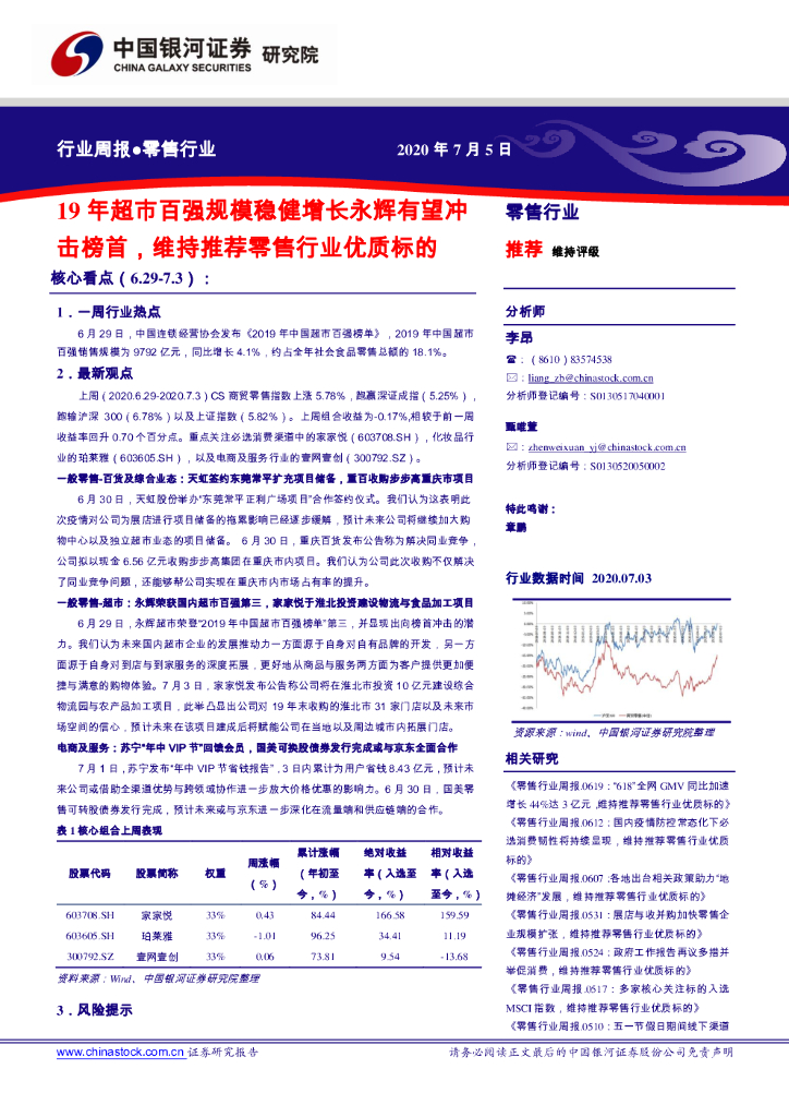中国银河:零售行业周报:19年超市百强规模稳健增长永辉有望冲击榜首,维持推荐零售行业优质标的.pdf