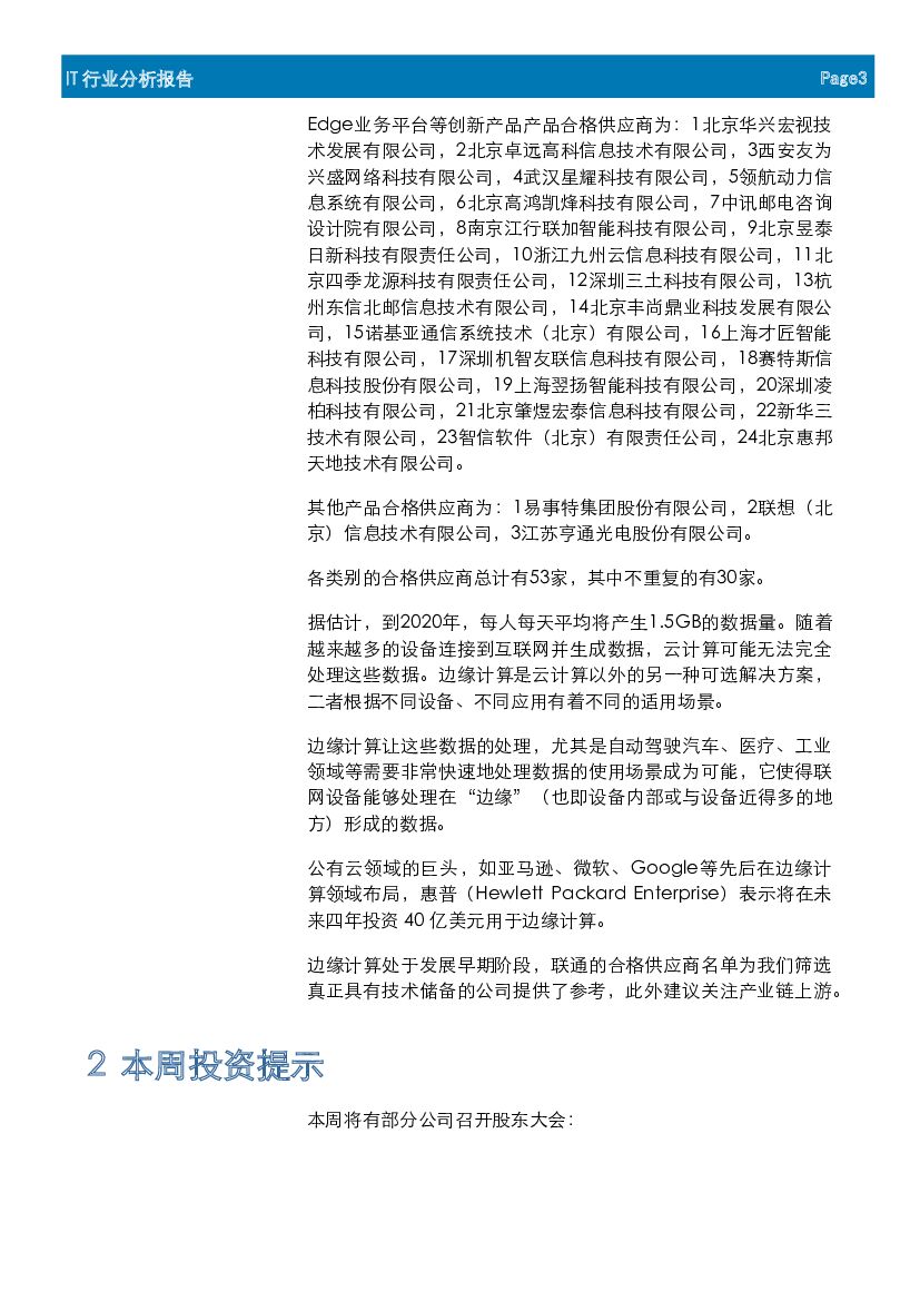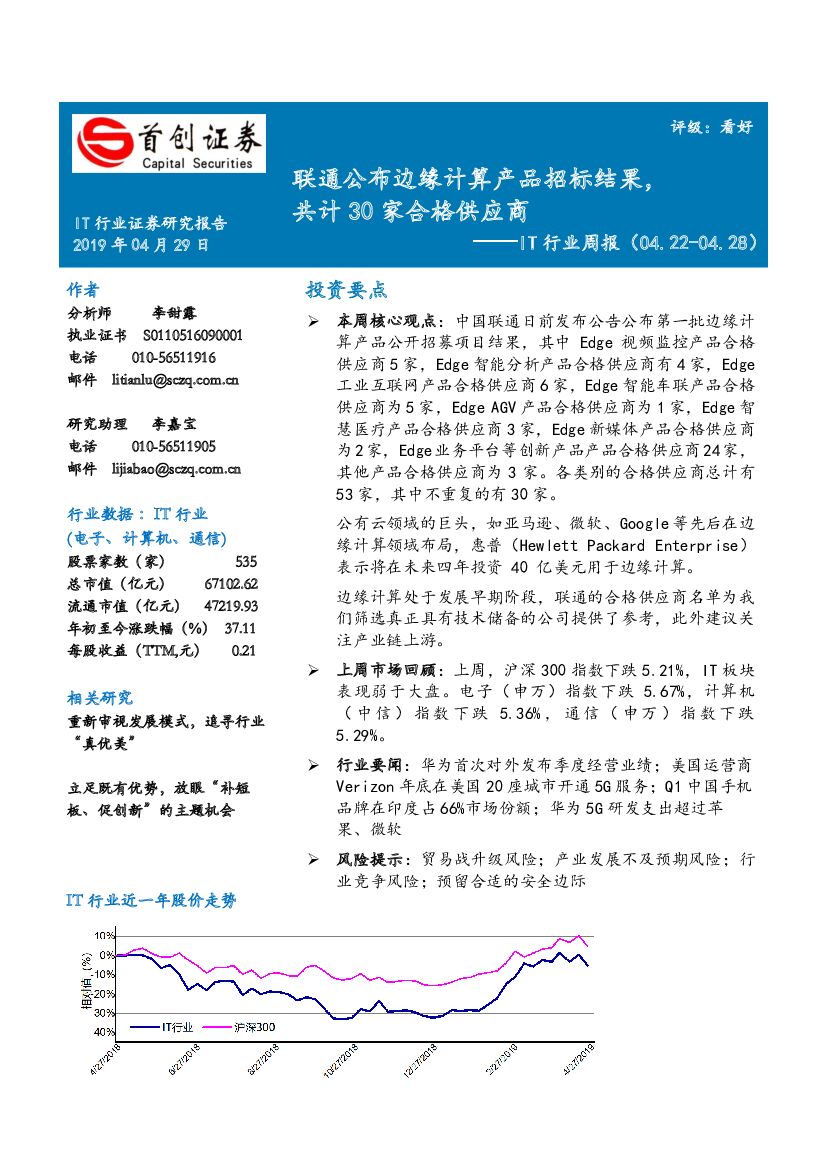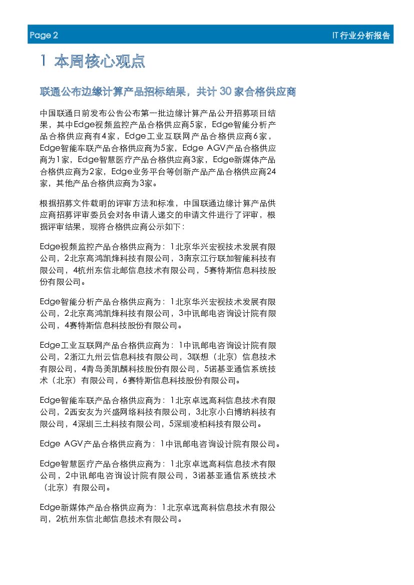 首创证券:IT行业周报:联通公布边缘计算产品招标结果,共计30家合格供应商.pdf