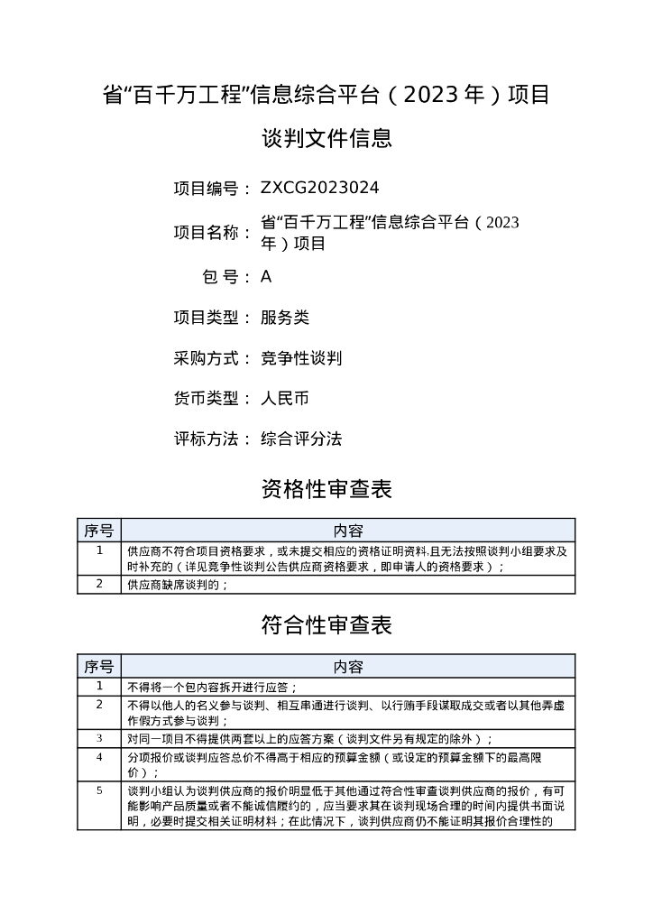深圳市-省“百千万工程”信息综合平台(2023年)项目招标文件.doc