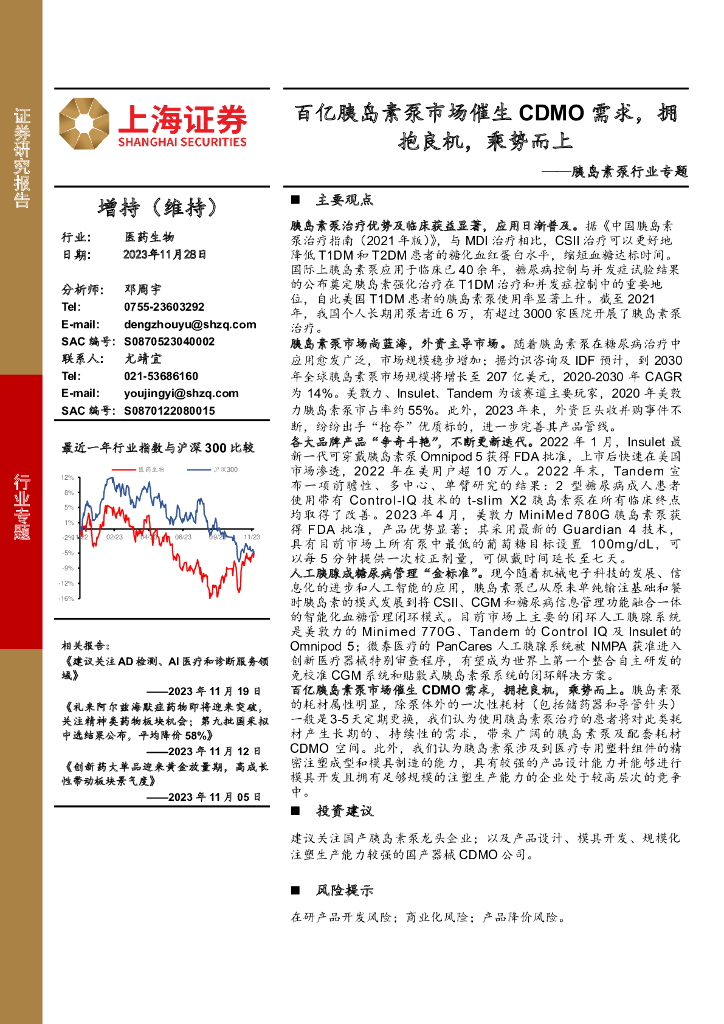 上海证券:胰岛素泵行业专题:百亿胰岛素泵市场催生CDMO需求,拥抱良机,乘势而上.pdf