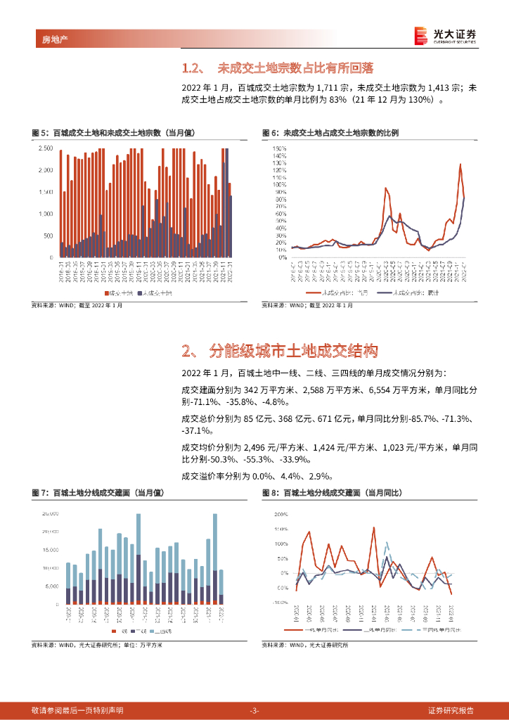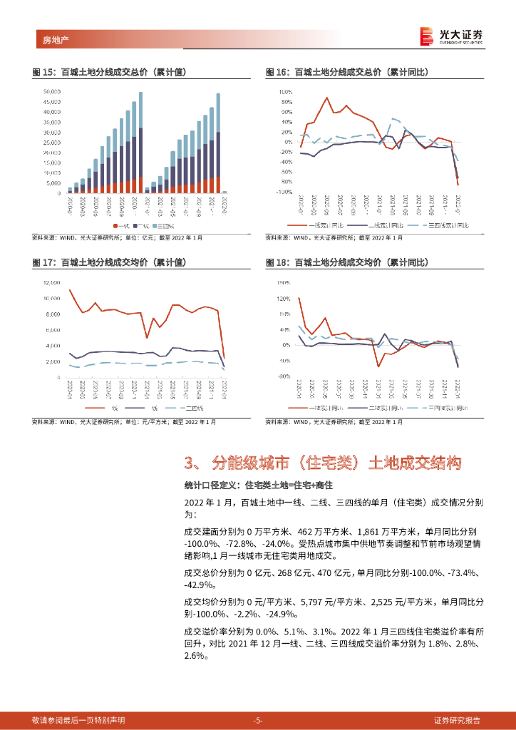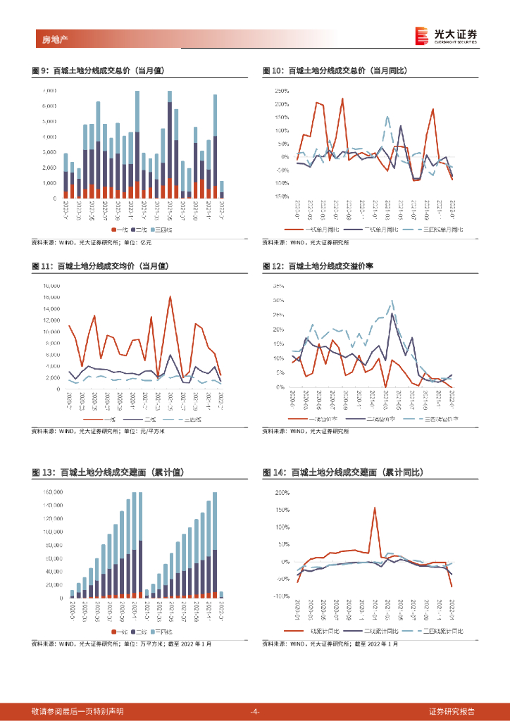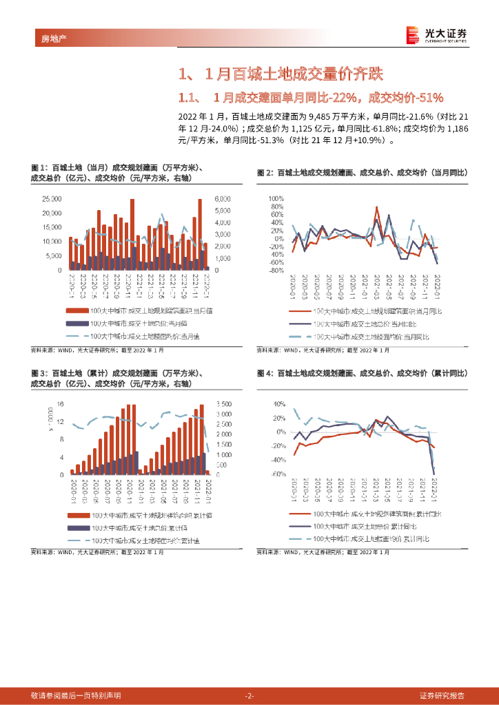 光大证券:房地产(地产开发):百城土地成交月度跟踪报告(2022年1月)-土地市场观望情绪浓厚,1月百城土地成交缩量22%.pdf