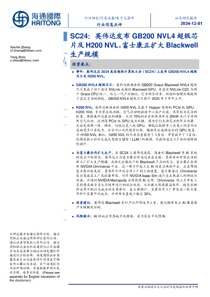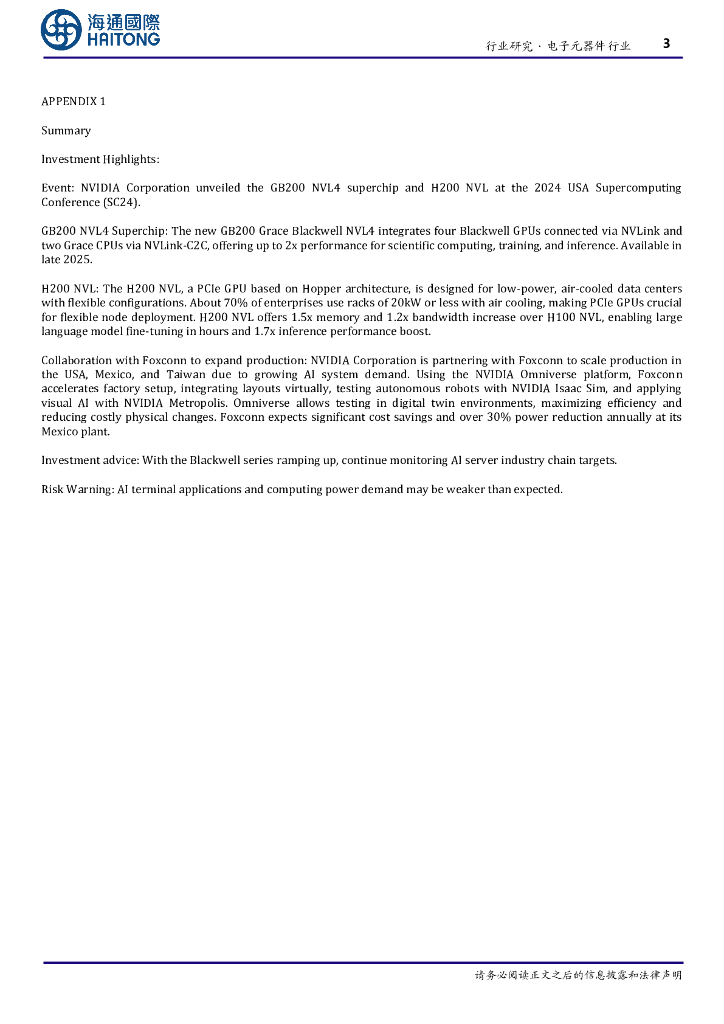 海通国际:电子元器件行业信息点评:SC24:英伟达发布GB200NVL4超级芯片及H200NVL,富士康正扩大Blackwell生产规模.pdf