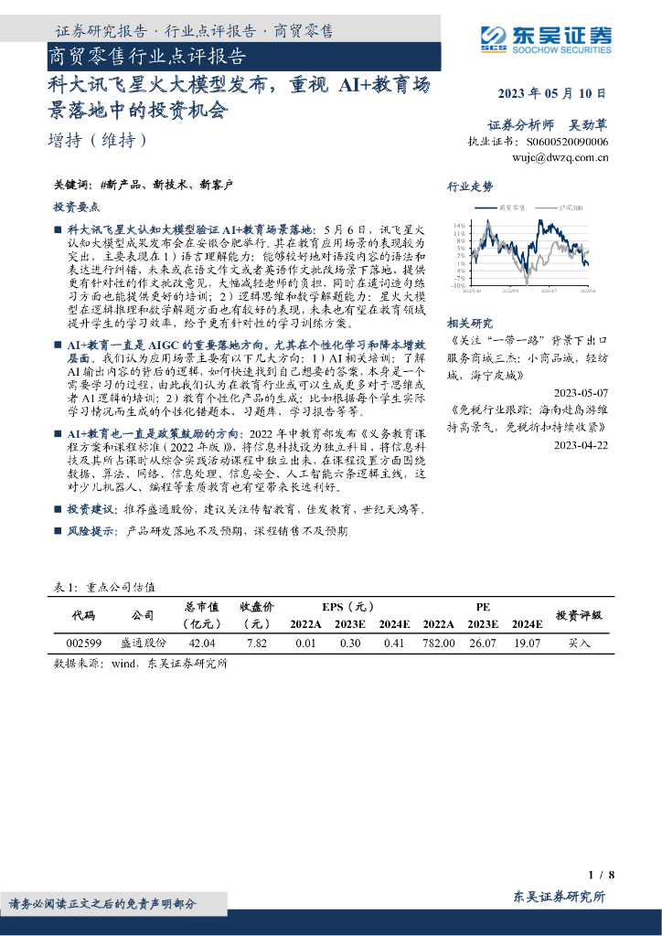 东吴证券:商贸零售行业点评报告:科大讯飞星火大模型发布,重视AI+教育场景落地中的投资机会.pdf