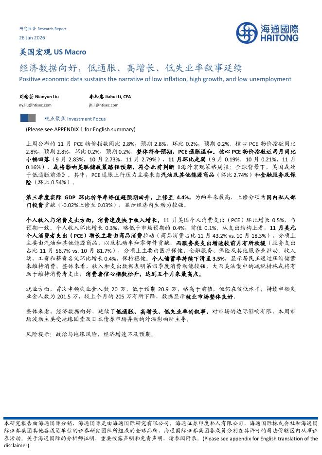 海通国际:美国宏观:经济数据向好,低通胀、高增长、低失业率叙事延续-260127.pdf