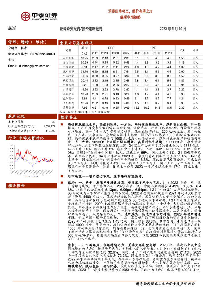 中泰证券:煤炭中期策略:消费旺季将至,煤价有望上攻.pdf